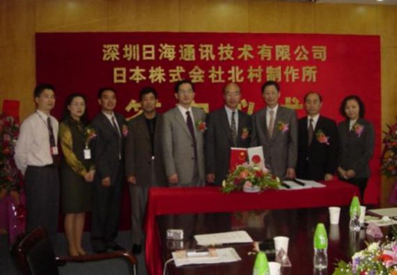 2004年4月13日,公司与日本株式会社北村制作所就户外一体化机房的设计、生产、销售和服务在必一运动公司智能签订了合作协议,共同合资组建深圳北村必一运动公司机房技术有限公司,并举行了隆重的签字仪式。公司周展宏董事长、王文生总裁、杨飞董事、机房事业部负责人孟庆光和日本北村制作所北村泰作...